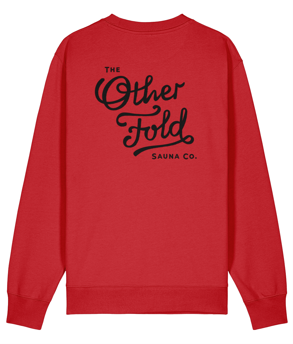 This medium fit red sweat features a hero logo on the front and back panels printed on soft 350gsm organic cotton.